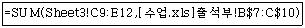 - ④ 현재시트의 셀 주소 [E4]에서 [F7]까지, Sheet2의 [C6]에서 [E12]까지를 더한다.