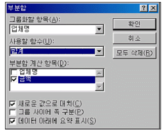 - ③ 부분합 계산 항목을 ‘금액’으로 선택한다.
