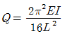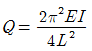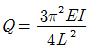 8. 그림의 수평부재 AB는 A지점은 힌지로 지지되고 B점에는 집중하중 Q가 작용하고 있다. C점과 D점에서는 끝단이 힌지로 지지된 길이가 L이고, 휨 강성이 모두 EI로 일정한 기둥으로 지지되고 있다. 두 기둥의 좌굴에 의해서 붕괴를 일으키는 하중 Q의 크기는?