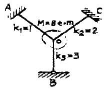 19. 다음 그림과 같은 구조물의 0점에 모멘트 하중 8 t・m 가 작용할 때 모멘트 Mco 의 값을 구한 것은?